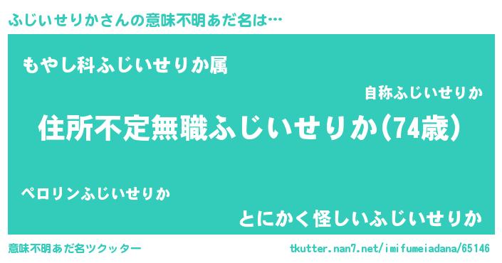 | 男性向けラノベタイトル風あだ名 | 『この素晴らしい世界にふじいせりかを!』 |