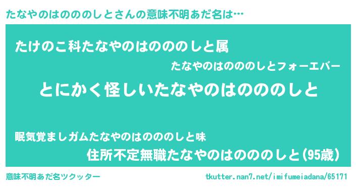 | 欧米人風あだ名 | 『ウサインたなやのはのののしと』 |