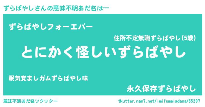 | 男性向けラノベタイトル風あだ名 | 『ずらばやしの嫁は女の子じゃないと思った?』 |