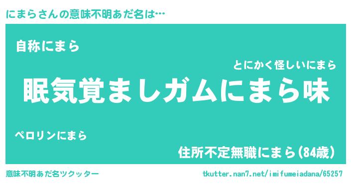 | ヒーロー風カッコイイあだ名 | 『友情の使者にまら』『究極戦士ニマラ』 |