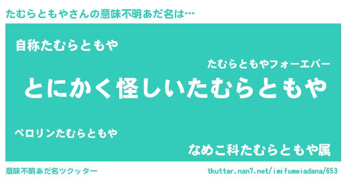 | ポケモン風あだ名 | 『ヒタムラトモヤ』『タムセウス』 |