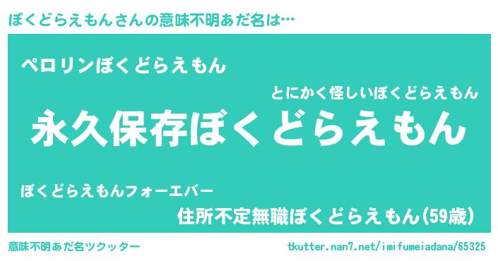 | 男性向けラノベタイトル風あだ名 | 『誰もが恐れるあのぼくどらえもんが、ぼくの専属メイドになるようです。』 |