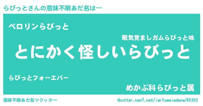 | 胡散臭い通販商品みたいなあだ名 | 『信頼と実績のサプリメント…その名も「らびっと」』 |