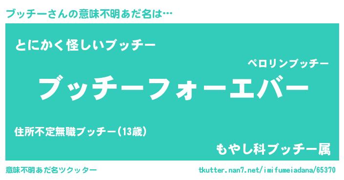 | ファンタジー風あだ名 | 『エターナルブッチーー』『ブッフェル』 |