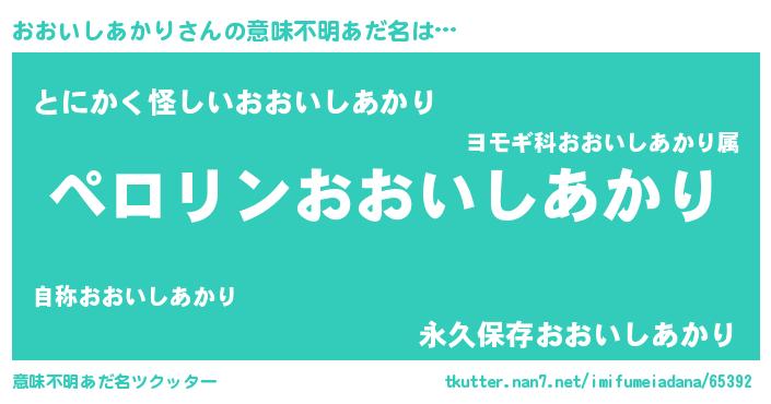 | 胡散臭い通販商品みたいなあだ名 | 『必ず成功する霊験あらたかなお札…その名も「おおいしあかり」』 |