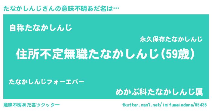 | 男性向けラノベタイトル風あだ名 | 『この素晴らしい世界にたなかしんじを!』 |