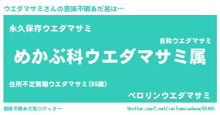 | 男性向けラノベタイトル風あだ名 | 『ウエダマサミスレイヤー』 |