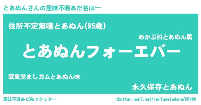 | ポケモン風あだ名 | 『トアヌダネ』『トーアイ』 |
