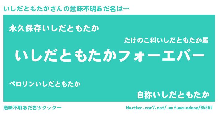 | 男性向けラノベタイトル風あだ名 | 『やはりいしだともたかの青春ラブコメはまちがっている 』 |