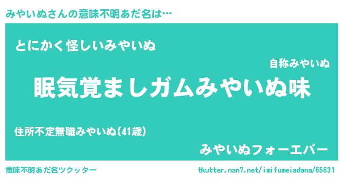 | 胡散臭い通販商品みたいなあだ名 | 『100人中100人が認めたイリジウム磁石…その名も「みやいぬ」』 |