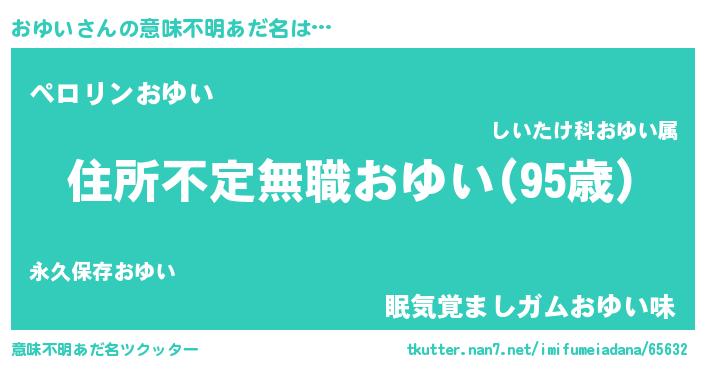 | 男性向けラノベタイトル風あだ名 | 『魔弾の王とおゆい』『おゆいの憂鬱』 |