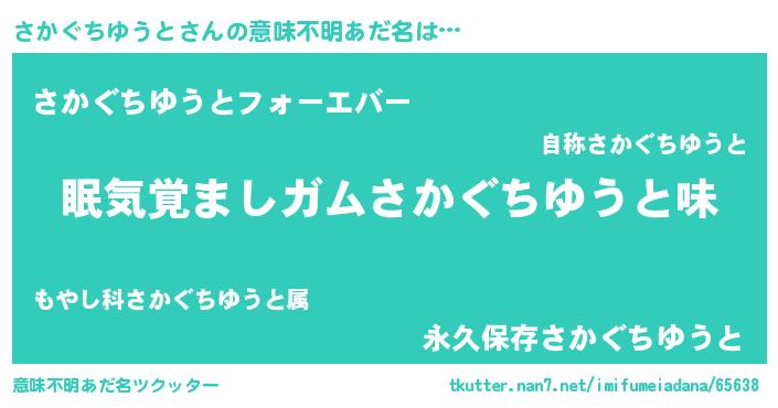 | 男性向けラノベタイトル風あだ名 | 『ノーゲーム・ノーサカグチユウト』 |