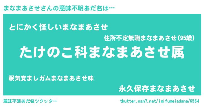 | 男性向けラノベタイトル風あだ名 | 『転生したらまなまあさせだった件』 |