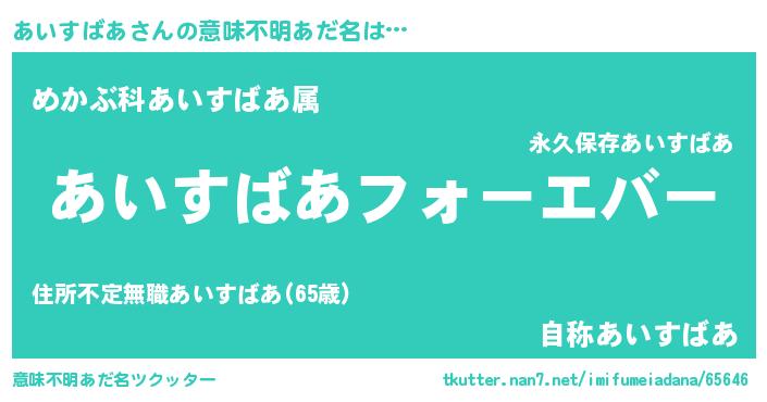 | 男性向けラノベタイトル風あだ名 | 『あいすばあに滅ぼされるだけの簡単なお仕事です』 |