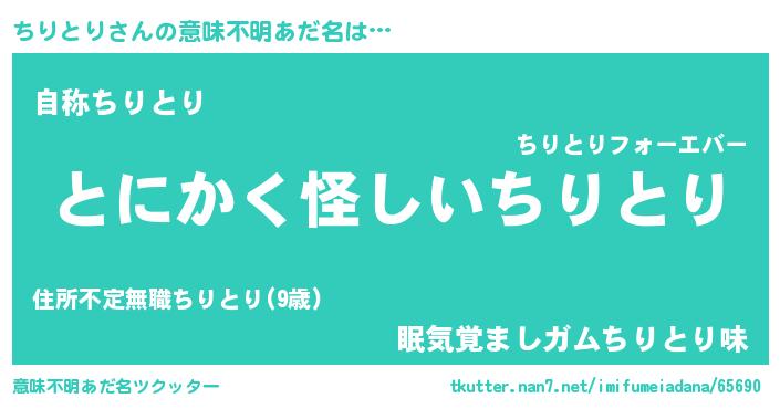 | 男性向けラノベタイトル風あだ名 | 『うちのちりとりが世界を掌握している!』 |