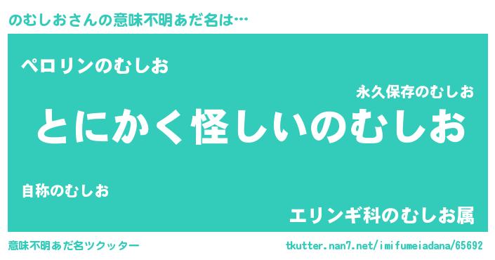 | 男性向けラノベタイトル風あだ名 | 『のむしおの嫁は女の子じゃないと思った?』 |