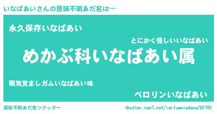 | 胡散臭い通販商品みたいなあだ名 | 『絶対に幸福をもたらす健康食品…その名も「いなばあい」』 |
