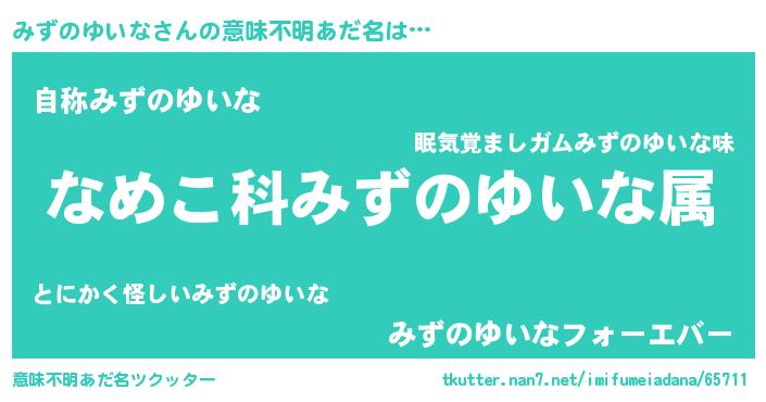| 男性向けラノベタイトル風あだ名 | 『転生したらみずのゆいなだった件』 |