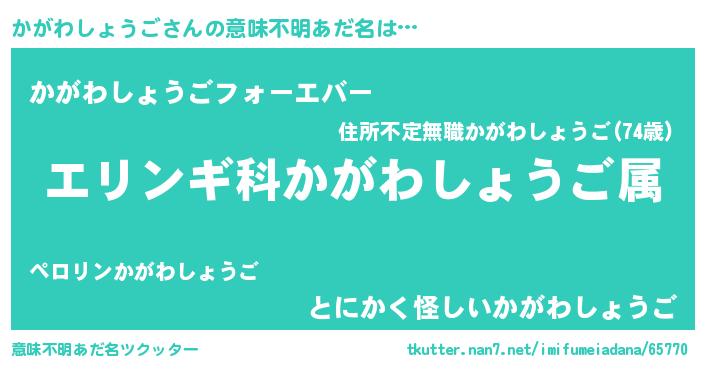 | 肩書あだ名 | 『かがわしょうご上級大将』 |