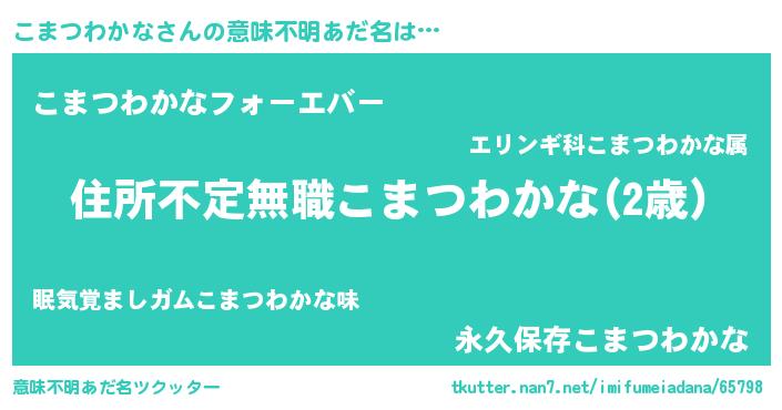 | 男性向けラノベタイトル風あだ名 | 『この素晴らしい世界にこまつわかなを!』 |