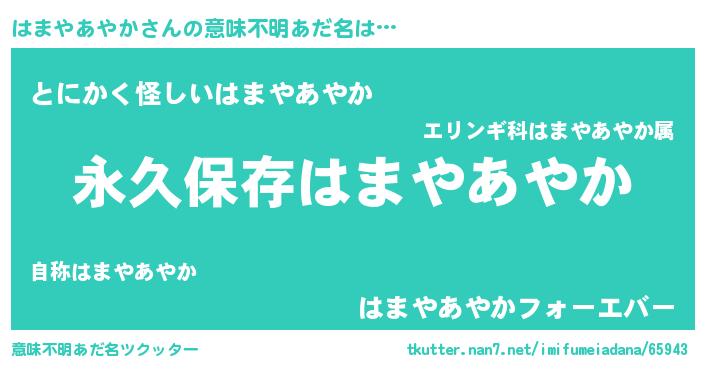 | 伝説のあだ名 | 『古より伝わる勇者はまやあやか』 |