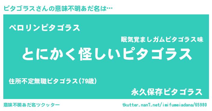 | ポケモン風あだ名 | 『ヒピタゴラス』『ピタゴンZ』 |