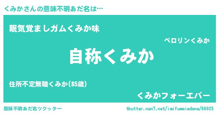 | ヒーロー風カッコイイあだ名 | 『超時空戦士クミカ』『友情の使者くみか』 |