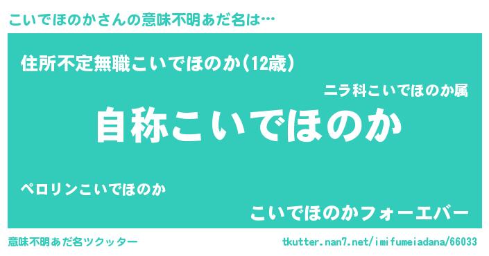 | 女子向けラノベタイトル風あだ名 | 『こいでほのかアンティーク』 |