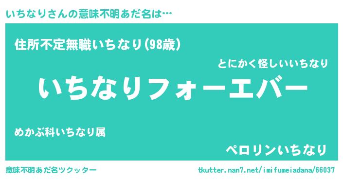 | 男性向けラノベタイトル風あだ名 | 『いちなりに滅ぼされるだけの簡単なお仕事です』 |