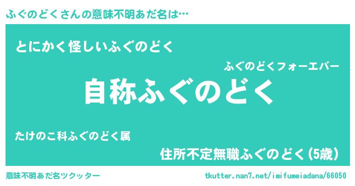 | 男性向けラノベタイトル風あだ名 | 『ふぐのどくに滅ぼされるだけの簡単なお仕事です』 |
