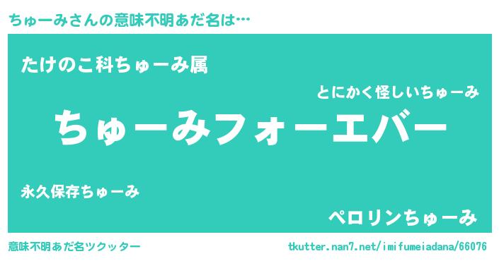 | 女子向けラノベタイトル風あだ名 | 『ちゅーみの婚約者』 |