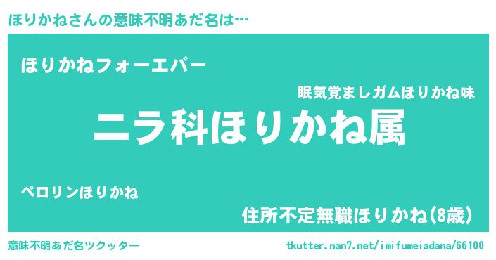 | 料理風あだ名 | 『ほりかねとほうれんそうの和風グラタン』 |