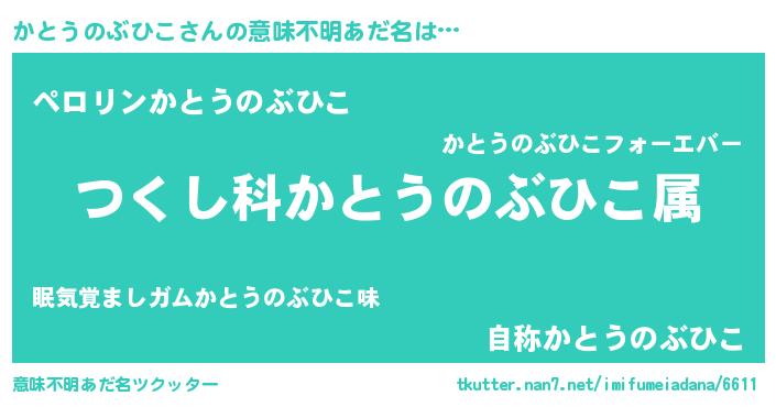 | 男性向けラノベタイトル風あだ名 | 『かとうのぶひこに滅ぼされるだけの簡単なお仕事です』 |