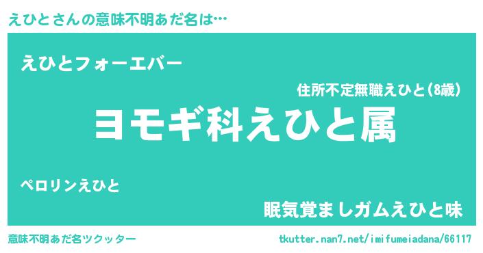 | 男性向けラノベタイトル風あだ名 | 『えひと~年齢イコール彼女いない歴の魔法使い~』 |