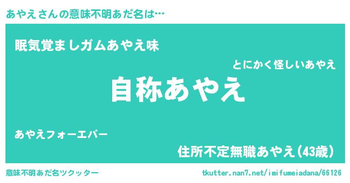 | ヒーロー風カッコイイあだ名 | 『超時空戦士アヤエ』『慈愛の使者あやえ』 |
