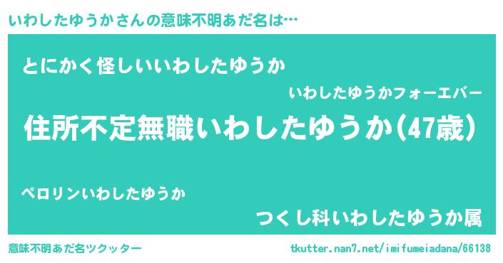 | 女子向けラノベタイトル風あだ名 | 『乙女ゲームの破滅フラグしかない悪役いわしたゆうかに転生してしまった…』 |