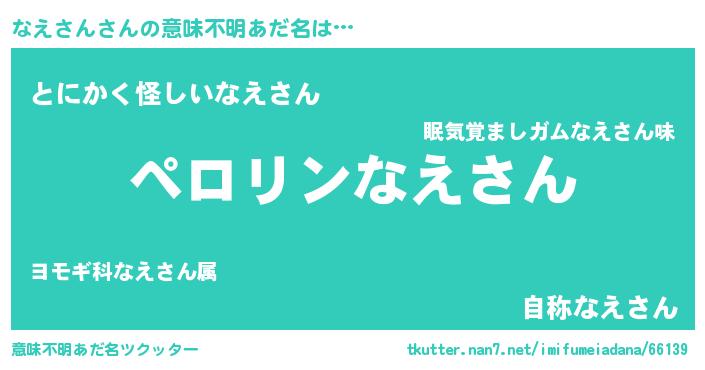 | ヒーロー風カッコイイあだ名 | 『スーパーナエサン』『暗黒騎士ナエ』 |