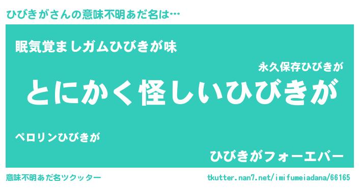 | 胡散臭い通販商品みたいなあだ名 | 『信頼と実績のサプリメント…その名も「ひびきが」』 |