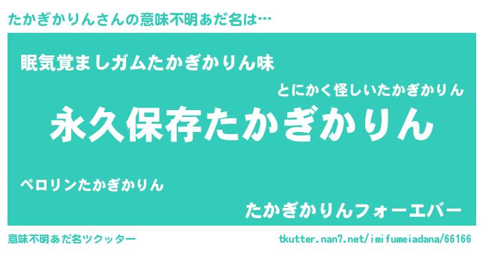 ヘコむあだ名 | 『たかぎかりん(小並感)』『レバニラ』 |
