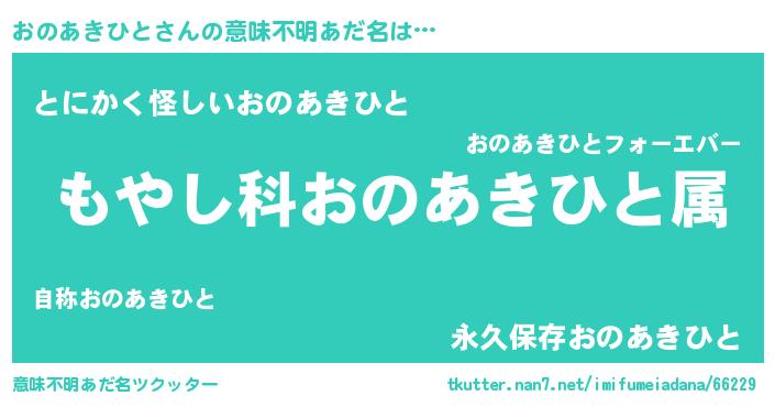 | 女子向けラノベタイトル風あだ名 | 『おのあきひとの玉の輿計画!』 |