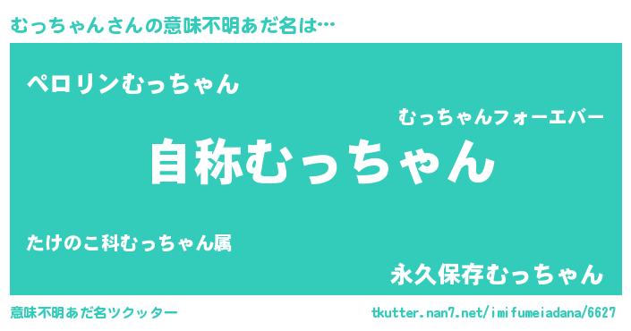 | 男性向けラノベタイトル風あだ名 | 『Re:むっちゃんから始める異世界生活』 |