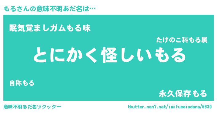 | 料理風あだ名 | 『もるの豆乳スープ』『もるのトマト煮』 |