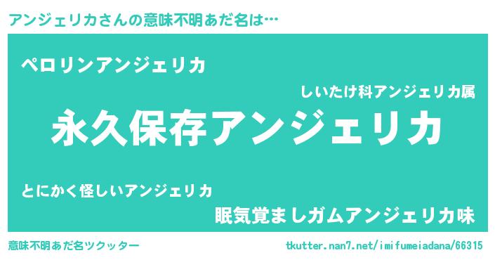 | 男性向けラノベタイトル風あだ名 | 『アンジェリカという概念が存在しない退屈な世界 』 |