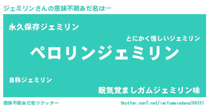 | ヒーロー風カッコイイあだ名 | 『スーパージェミリン』『ネオジェミリン』 |