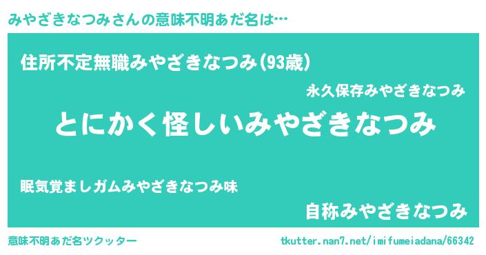 | ポケモン風あだ名 | 『ヒミヤザキナツミ』『ミーヤイ』 |