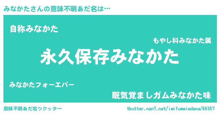 | 男性向けラノベタイトル風あだ名 | 『みなかたという概念が存在しない退屈な世界 』 |
