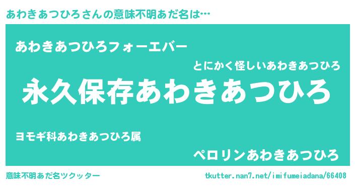 | ヘコむあだ名 | 『あわきあつひろ(爆)』『なまこ酢』 |