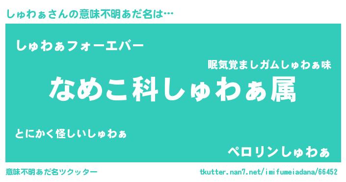 | 2回繰り返すあだ名 | 『わいわい』『ししゅゅ』『しゅしゅ』 |