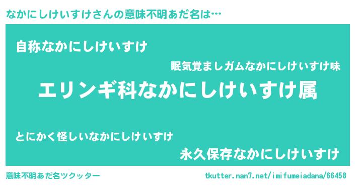 | 男性向けラノベタイトル風あだ名 | 『ナカニシケイスケスレイヤー』 |