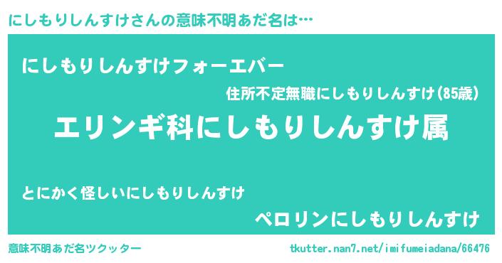 | 伝説のあだ名 | 『秘められし忍者にしもりしんすけ』 |